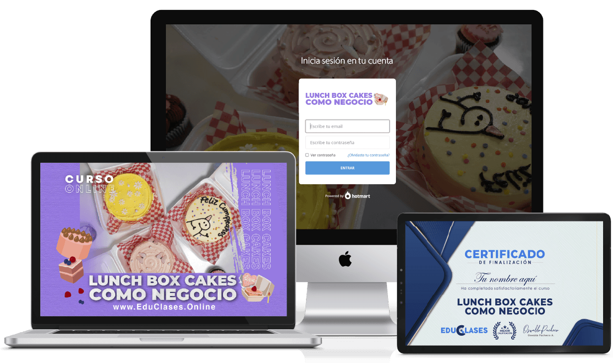 Todo lo que necesitas para empezar a vender Lunch Box Cakes está aquí. Empieza desde casa y a tu ritmo. Más que un curso, es una oportunidad para emprender sin miedo.
